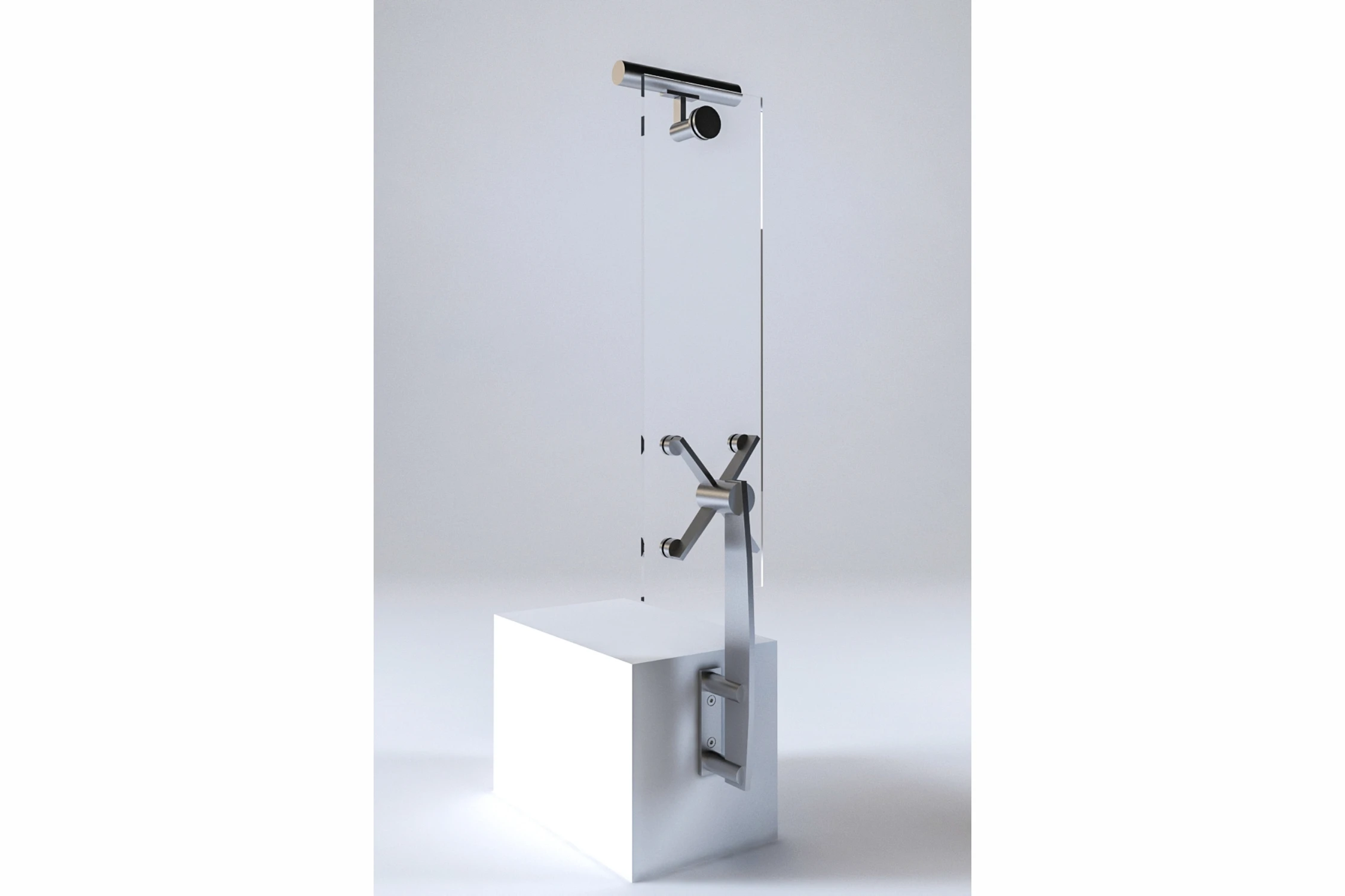 Square Flat Baluster With Spider Type Glass Fitting System.